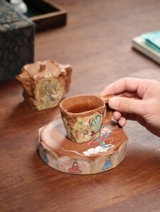Handcrafted clay sculptures, tea ware and art tiles inspired by the ancient murals of the Mogao Caves.